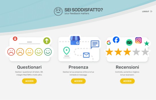 • Questionario personalizzato per la tipologia di servizio erogato;